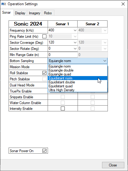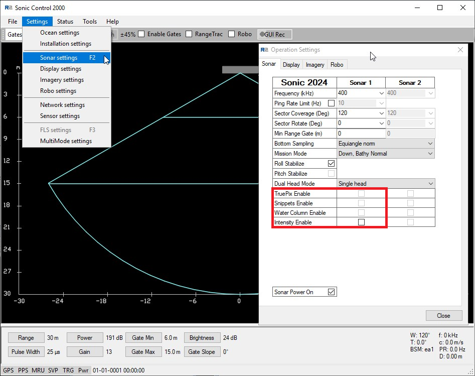 The settings above are model and frequency (2020 / 2022 / 2024) dependent. Check the R2Sonic documentation for related parameter information.