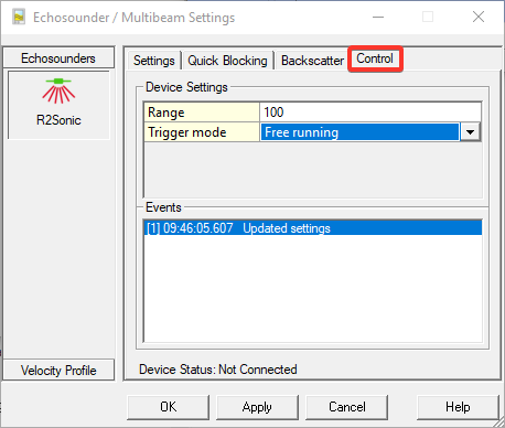 The Control options can be found in the Echosounder / Multibeam Settings.