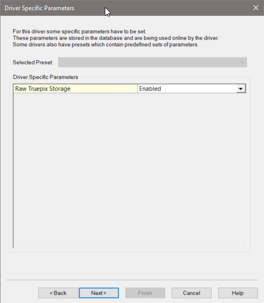 In Database Setup for this driver some driver specific settings can be entered.