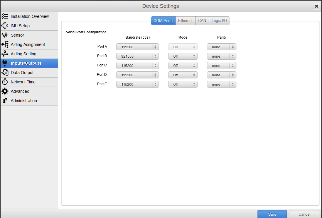Serial | Yes | SBG Systems <system type> (UTC) |