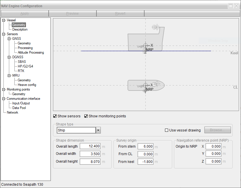 Node (Lever Arm) | Monitoring Location as set in the Seapath software |