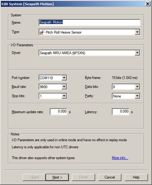 Fill in the correct I/O parameters and press Next to go to the next wizard page.In order to decode the motion, add to your template setup a Pitch Roll Heave Sensor system and select driver