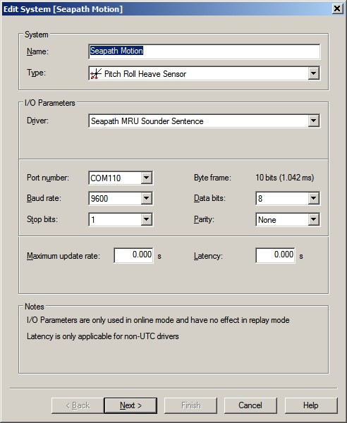 Driver | Seapath MRU Sounder Sentence | Interface Type | Serial | Driver Class Type | Terminated <LF> |
