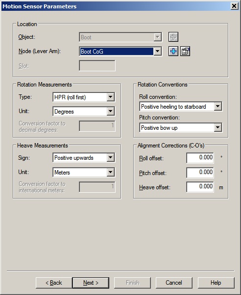 In order to decode the motion, add to your template setup a Pitch Roll Heave Sensor system and select driver