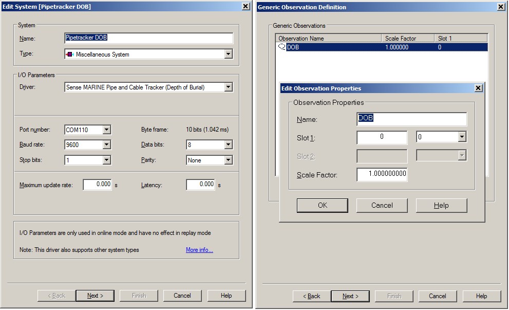 In order to decode the depth of burial (DOB), add a Miscellaneous system and select driver "Sense MARINE Pipe and Cable Tracker (Depth of Burial)".