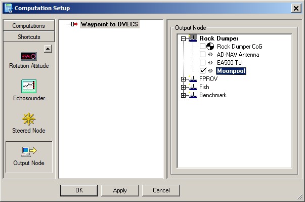 These waypoints will contain the co-ordinates of the current mainline, or of the current position of the selected output node. This output node is selected in the Controller's Computation Setup.