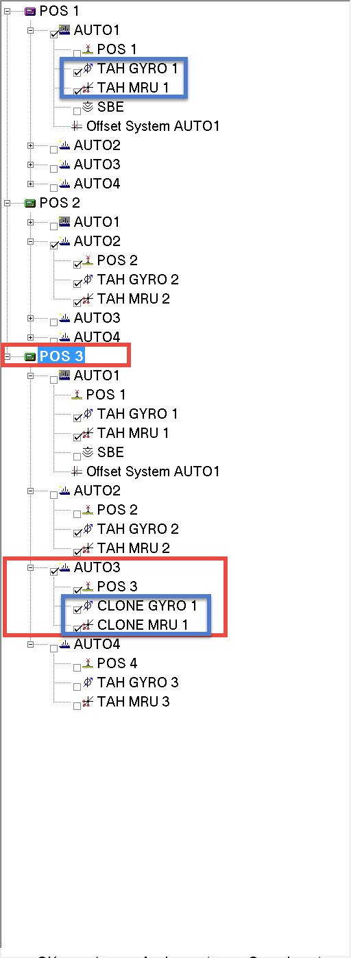 Cloned systems are listed in the Computations dialog window just like any other system. In the example, systems 'TAH Gyro 1' and TAH MRU 1' have been cloned for use in the 'POS 3' computation.
