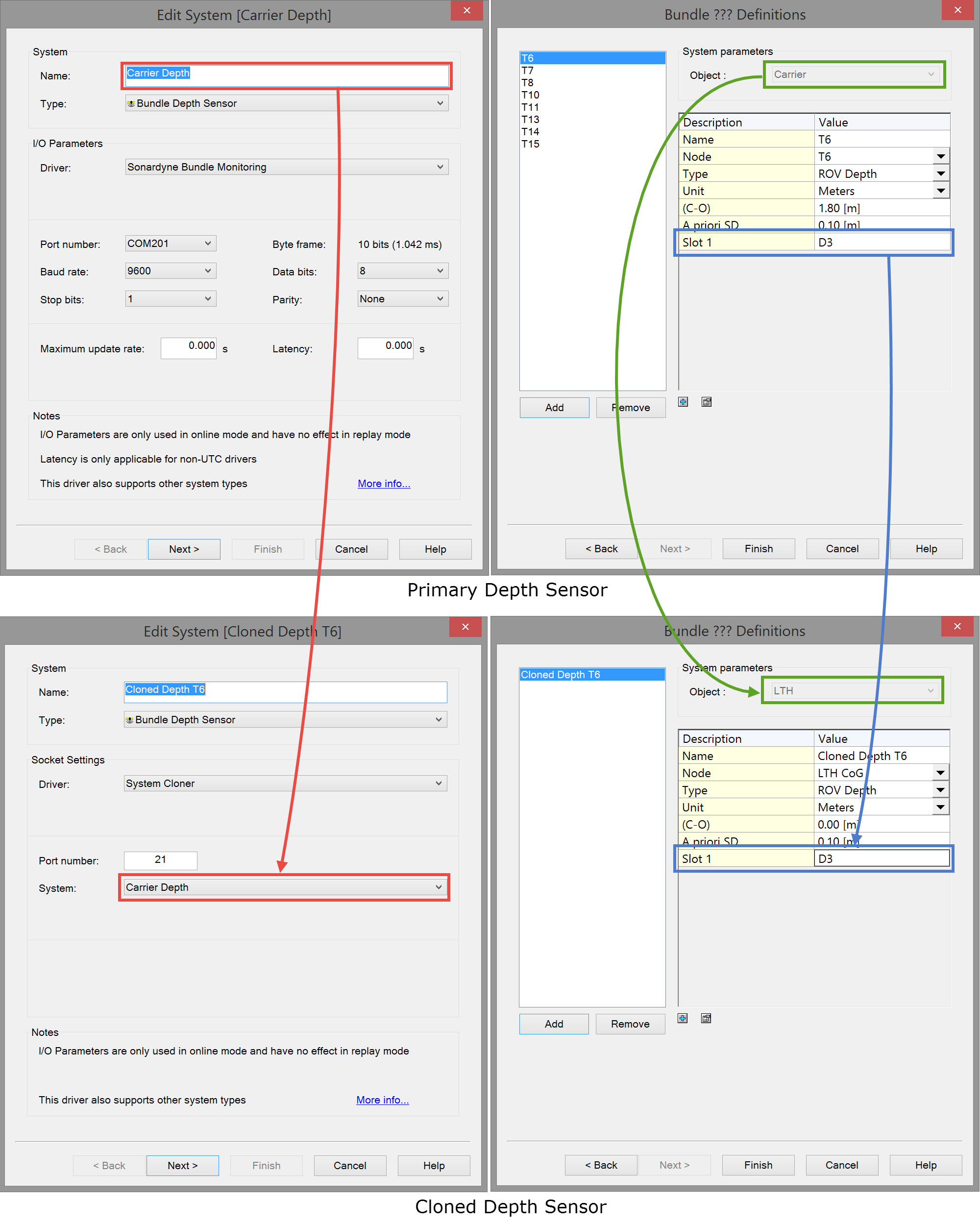 In a Bundle Tow operation for cloning compasses/depth sensors on a bundle.