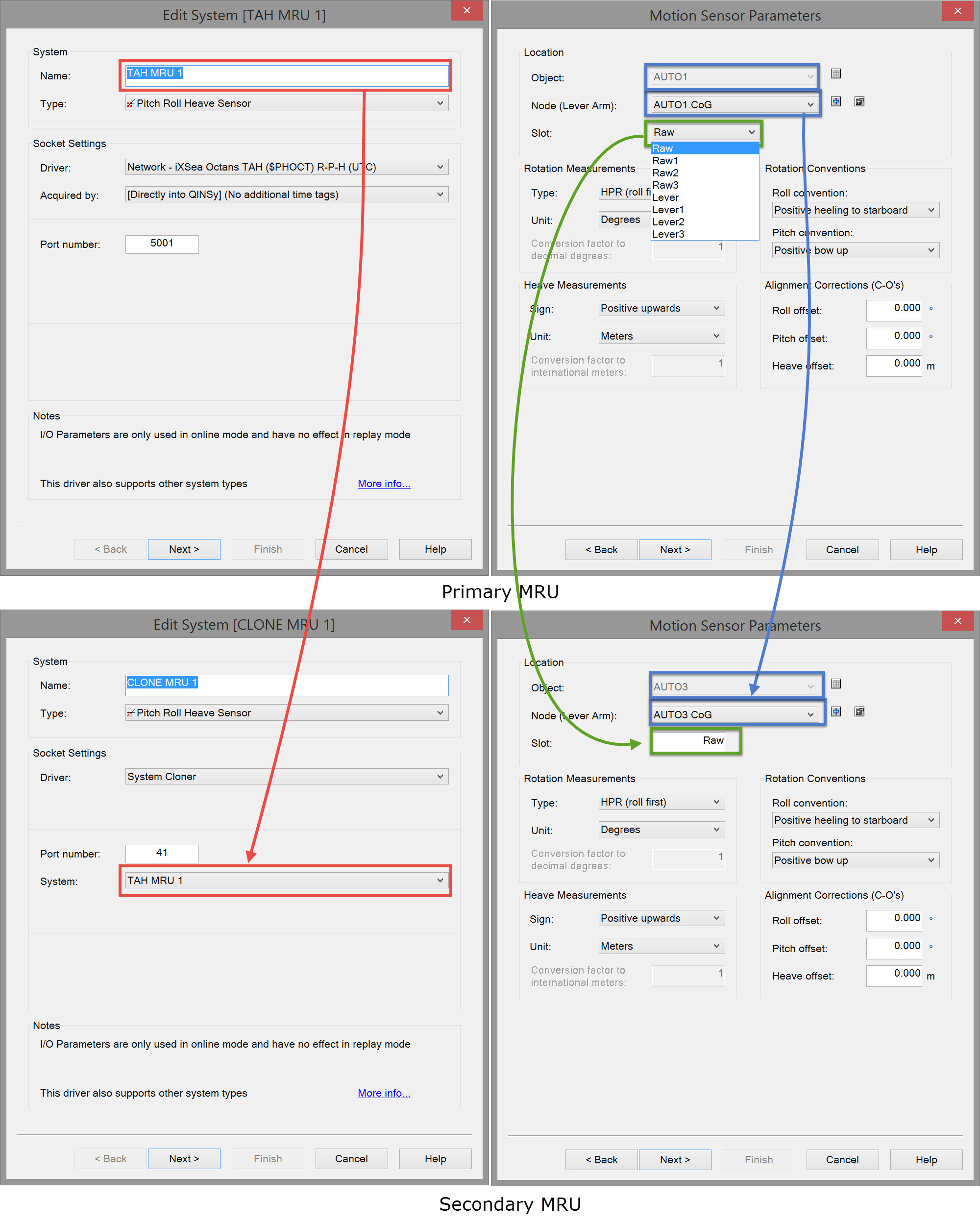 In this example the primary driver 'TAH MRU 1' is defined on object 'Auto1' with a slot number 'Raw'.