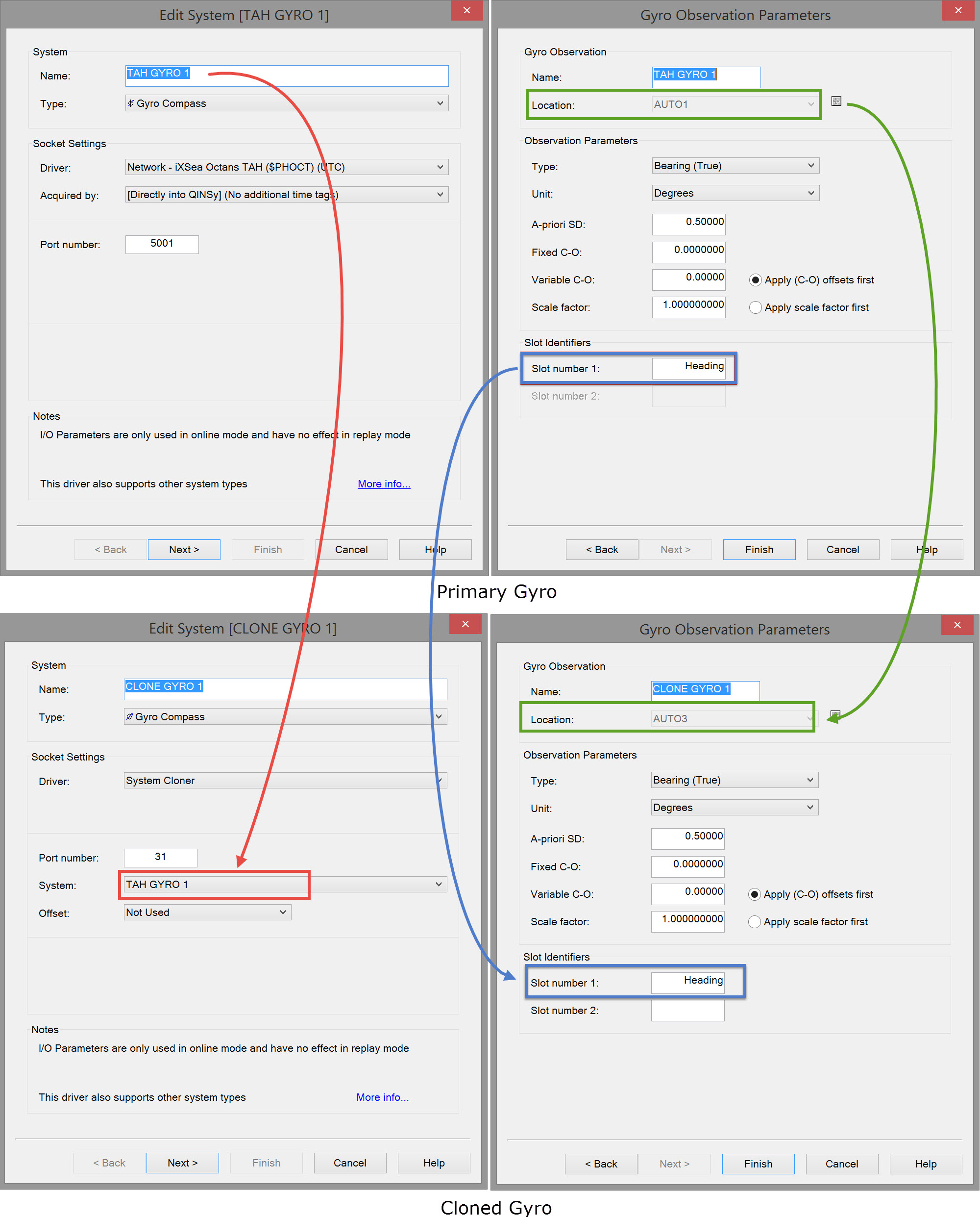 The cloned gyro clones 'TAH Gyro 1' and is defined on object 'Auto3' with exactly the same slot number, i.e. 'Heading'.
