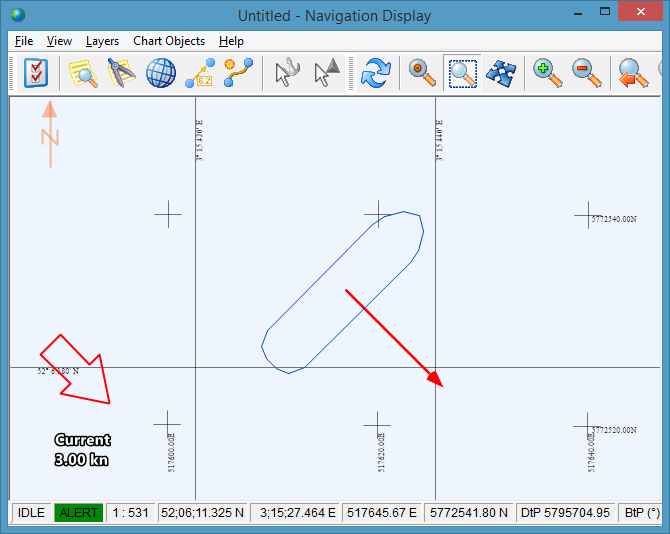 In the Navigation display the average speed and direction of the current can be visualized, using vectors and a text markup.
