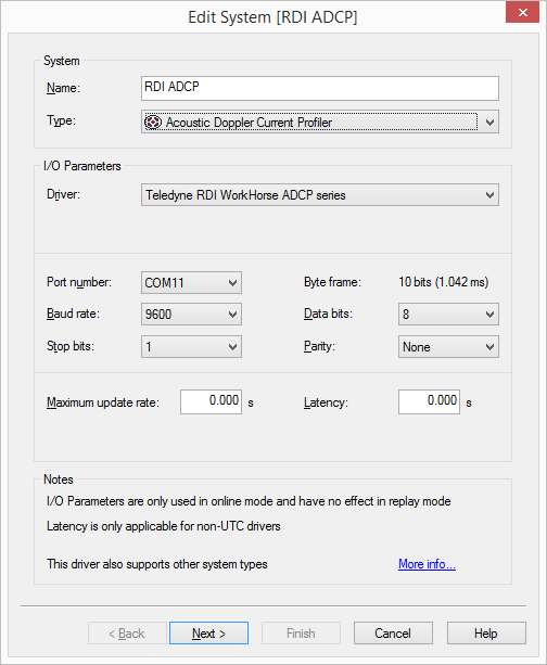 Select system type: Acoustic Doppler Current Profiler