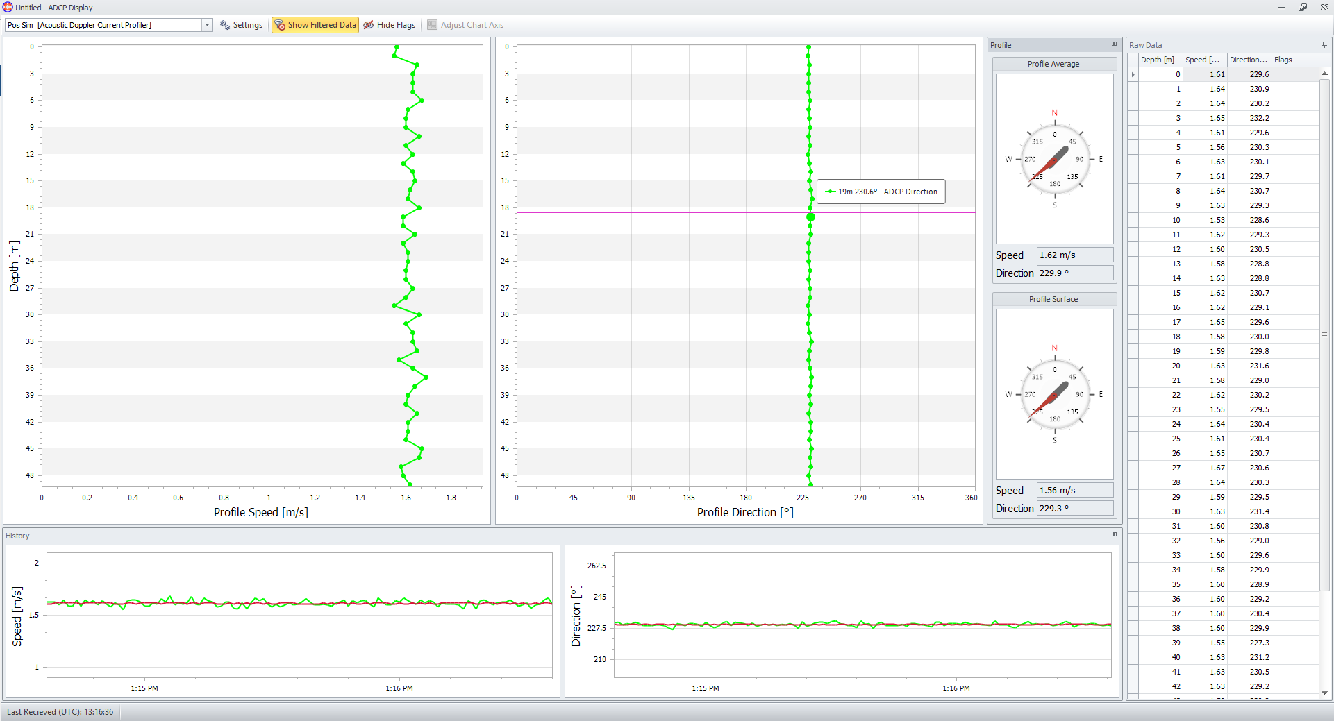Both Raw and ADCP results data can be shown.