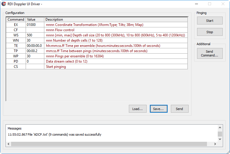 Below an overview of some of the commands that can be used to control the ADCP.