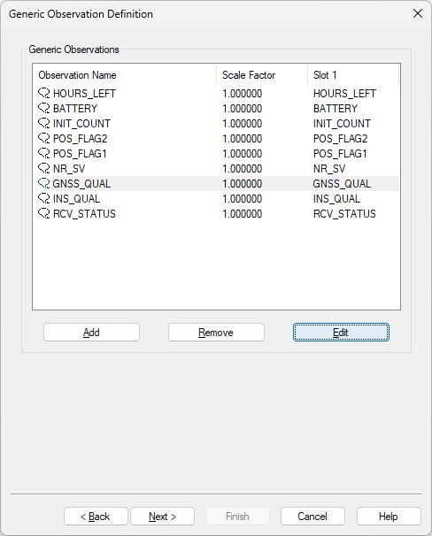 Important is to select for each observation the Slot 1 Id which defines from which GSOF message the observations will be decoded: