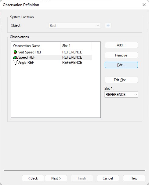 Add the required observation types that you want and select for each one the location that represent the frame for the selected Slot 1.