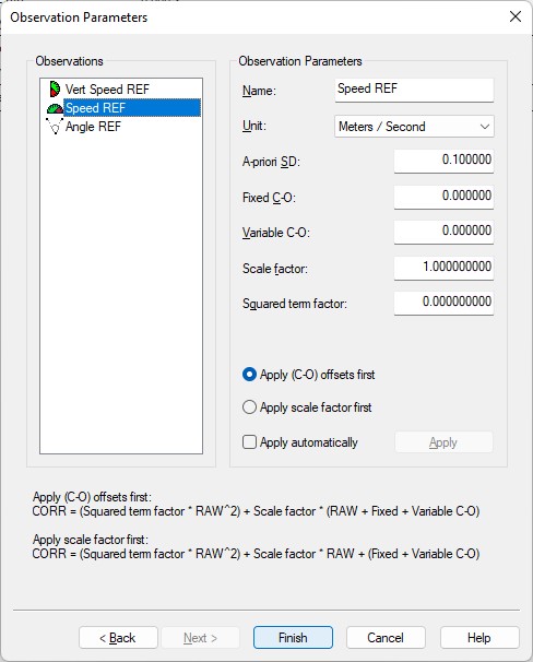 Note that from the listed observation types only the Angle, Speed and Vertical Speed types are supported, the Bearing (True) type observation is not supported.