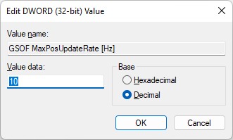 An advanced user may change this default limitation of max 10 Hz incoming positions by altering the value of the following registry key while offline: