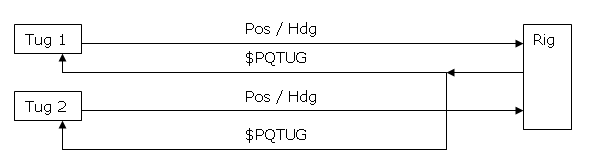 On the tug position and heading data will be sent to the rig or barge. If this is a GGA and HDT message each updating once a second, it is advised to us the combined NMEA GGA / HDT driver.