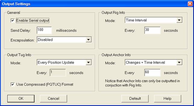 Press the "Output..." button to activate the Output Settings dialog (see below):