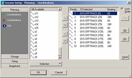 Which lines and in what order and with which bearing must be defined in the Controller's Session Setup.