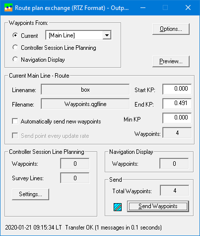 Select Waypoints from the Controller's Waypoint Planning if you want to send more than one single survey line in one go to the DP.