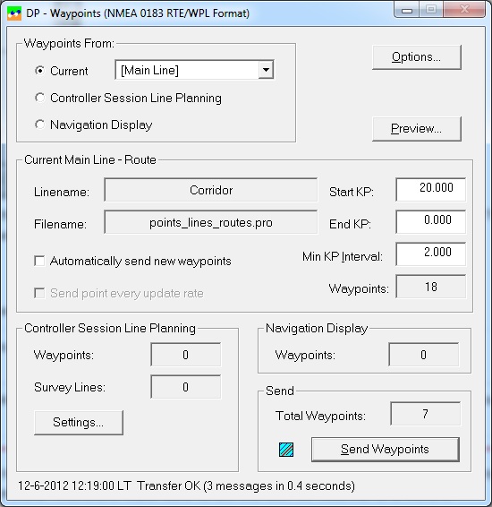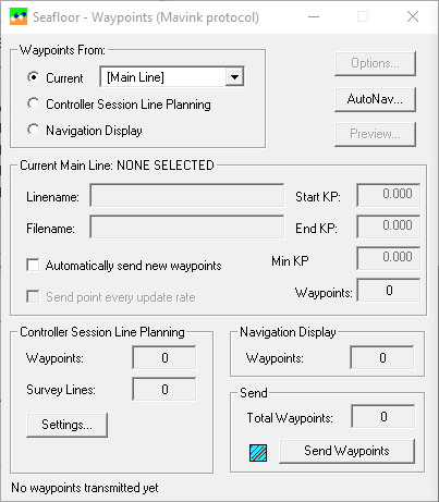 Select Waypoints from the Controller's Waypoint Planning if you want to send more than one single survey line in one go to the DP. Which lines and in what order and with which bearing must be defined in the Controller's Session Setup.