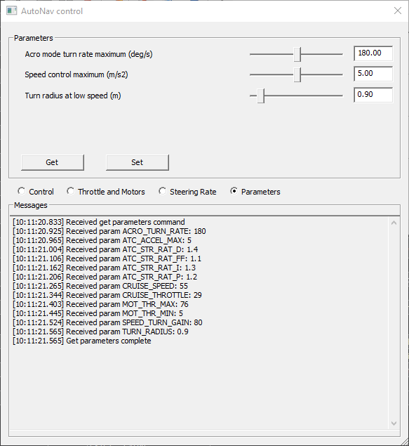 This view allows the user to get and set parameters related to throttle and motor control for the auto pilot: