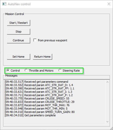 The user interface of the driver consists of two parts: one part specifically for sending waypoints and another for AutoNav specific features.