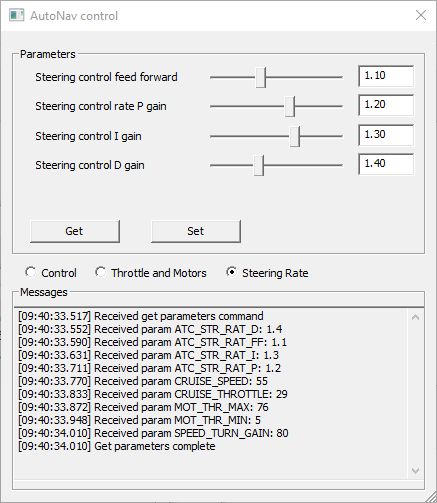 Steering Rate: Used to get/set parameters related to steering rate.