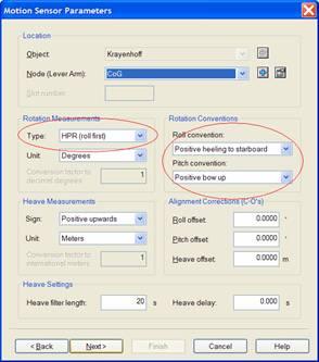 The driver decodes heading and/or motion (pitch, roll, no heave!) from the binary messages. Two versions of the driver are available: an active version and a passive one. The active driver sends certain commands to the sensor, in order to set the required output mode and output settings. The passive one only receives data, and the MTi sensor should therefore be programmed in such a way that it outputs the data in the required output mode and output settings. See Decoding Notes below for the correct settings.