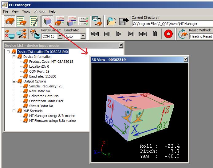 If the MTi sensor is programmed as stated above, then the passive driver will recognize the datastream immediately, and will decode the roll, pitch and yaw successfully.