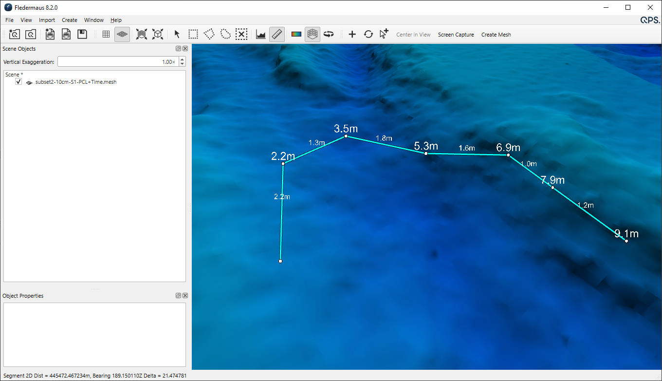 With mesh data sets often having resolutions well below 1m, the measurement tool was improved to display sub-meter values.