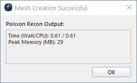 To provide feedback on the time and resources used during the creation of a mesh, we have added a stats summary dialog after the creation process completes. In addition to reporting running time, the dialog will display any errors that occurred during the creation process.