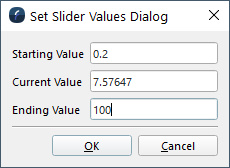 To increase beyond the default slider max of 20, press the button on the right labeled "...". This will display the "Set Slider Values" dialog, where you can set a new maximum value, such as 100.