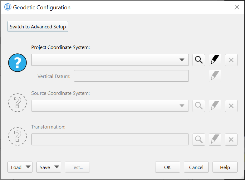 Moving next to the Geodetic Configuration dialog, there are several minor improvements as well. In particular, it is much clearer now that the Guided Setup and Advanced Setup options are mutually exclusive workflows: the Detailed Overview tab has been removed in favor of having to specifically click a button to switch to an advanced setup. Acronyms have been removed and clearer terminology has been used to make it clear what is required from the user. A help button has been added that will launch a web browser with the manual for the Geodetic User Interface.