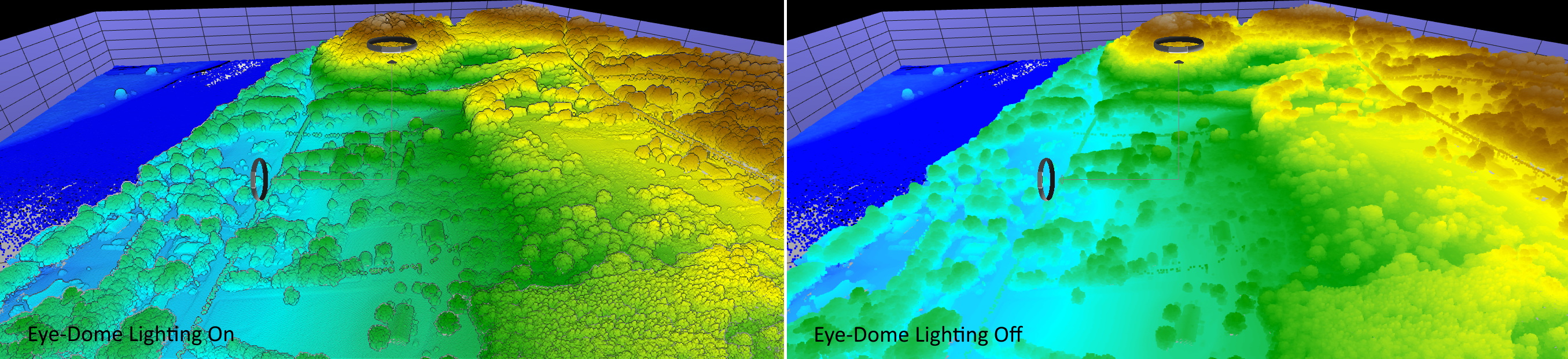 Eye-Dome Lighting (EDL) is a shading technique for points that improves depth perception and shape recognition. In addition, the technique is very fast and scales well with large point clouds.