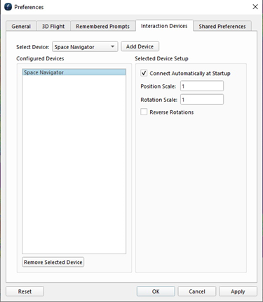 The new system is easier to use and provides clear feedback on the state of your connection to the device. Any connected device can be used right away, without needing to go into any special flight modes. In upcoming releases we will add the ability to record the flight path to be used with the Presentation mode slides. To add a device, there is a new "Interaction Devices" tab in the Preferences dialog.
