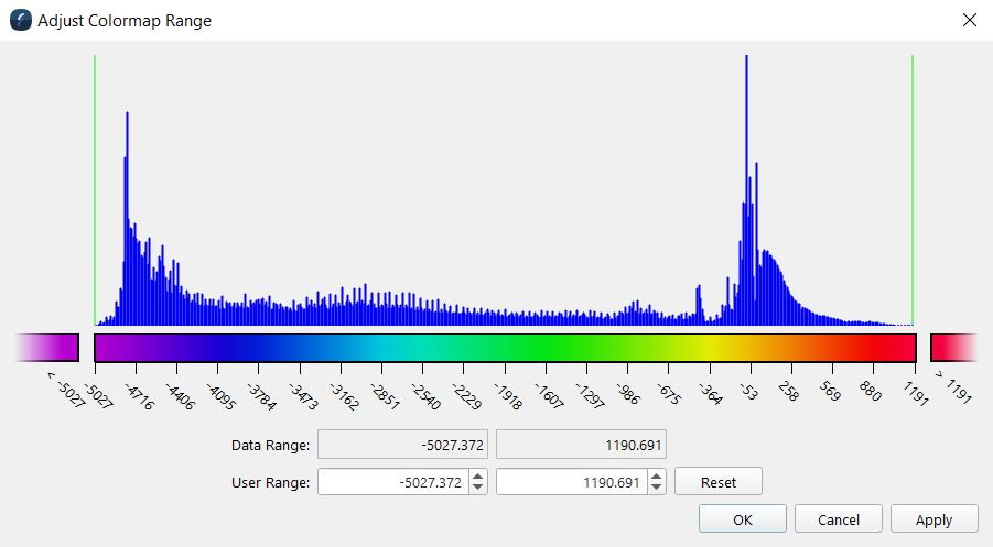 Figure 3. Scalar colormap and histogram adjust dialog