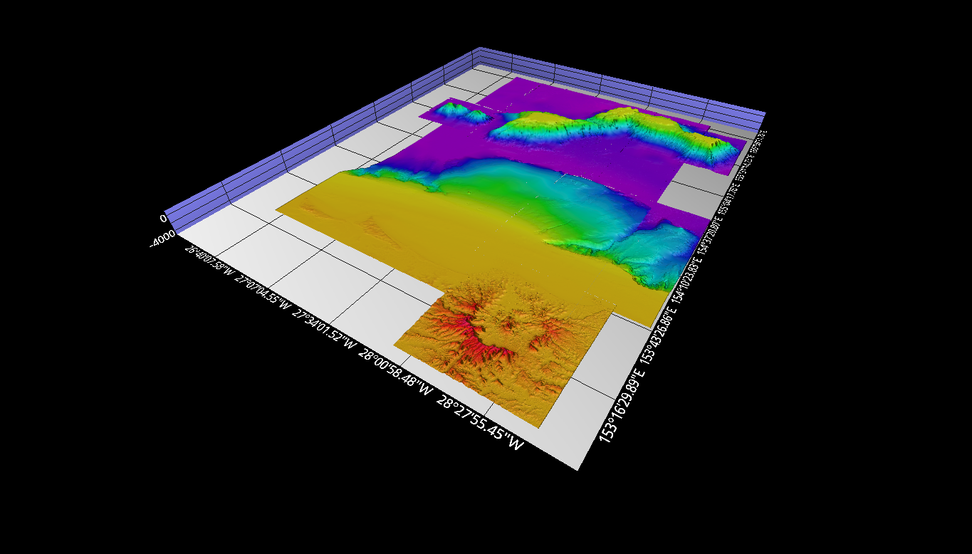 Figure 5. Fledermaus Scene with geographic datasets. Credits to DeepReef.org