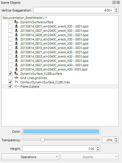 Color, Transparency, Height Adjustments in Scene Objects Dock