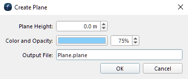 The color, transparency, and height of the Plane can be adjusted after creation in the Scene Objects Dock.