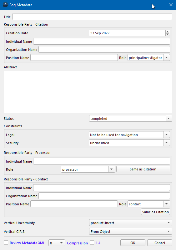 This dialog simply gathers all the metadata information that can be stored with a bag surface.