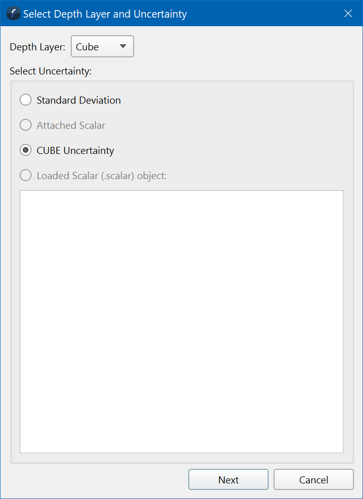 The "Select Uncertainty" radio button is initially configured based on what you have selected in the Fledermaus Scene Objects Dock.