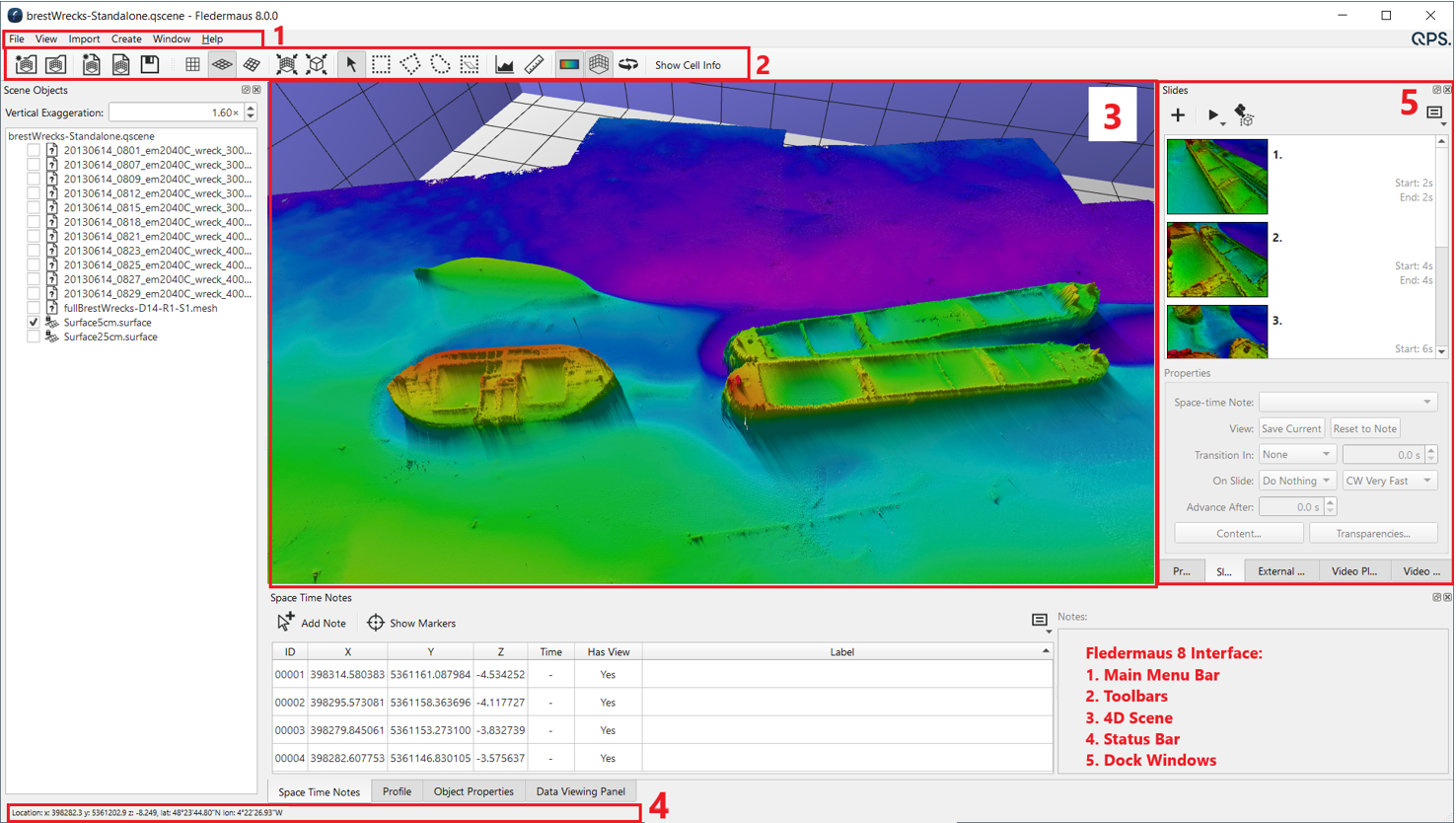 The Fledermaus 8 interface is described in detail in each one of the following items:
