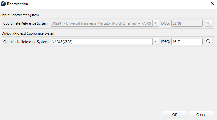 Reproject Coordinate System Dialog