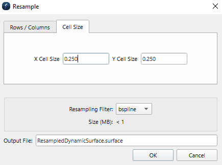 Instead of resampling based on the number of rows or columns, the surface can also be changed by specifying the X and Y cell sizes.