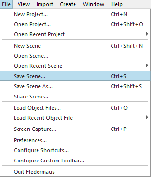 Select the File dropdown menu and the Save Scene... option, from the File drop down menu as shown in Figure 12.