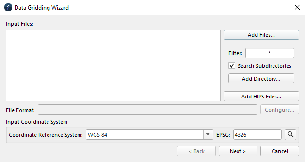 In the data gridding Wizard as shown in Figure 3, select the Add Files or Add Directory option, navigate to the folder containing your xyz files and select. Click Open