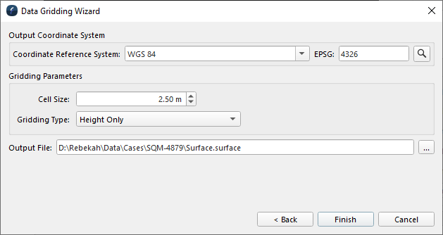 Check the cell size and gridding type are adequate for your needs. Name the output file and click Finish. You will get a grid as the one below in Figure 5.